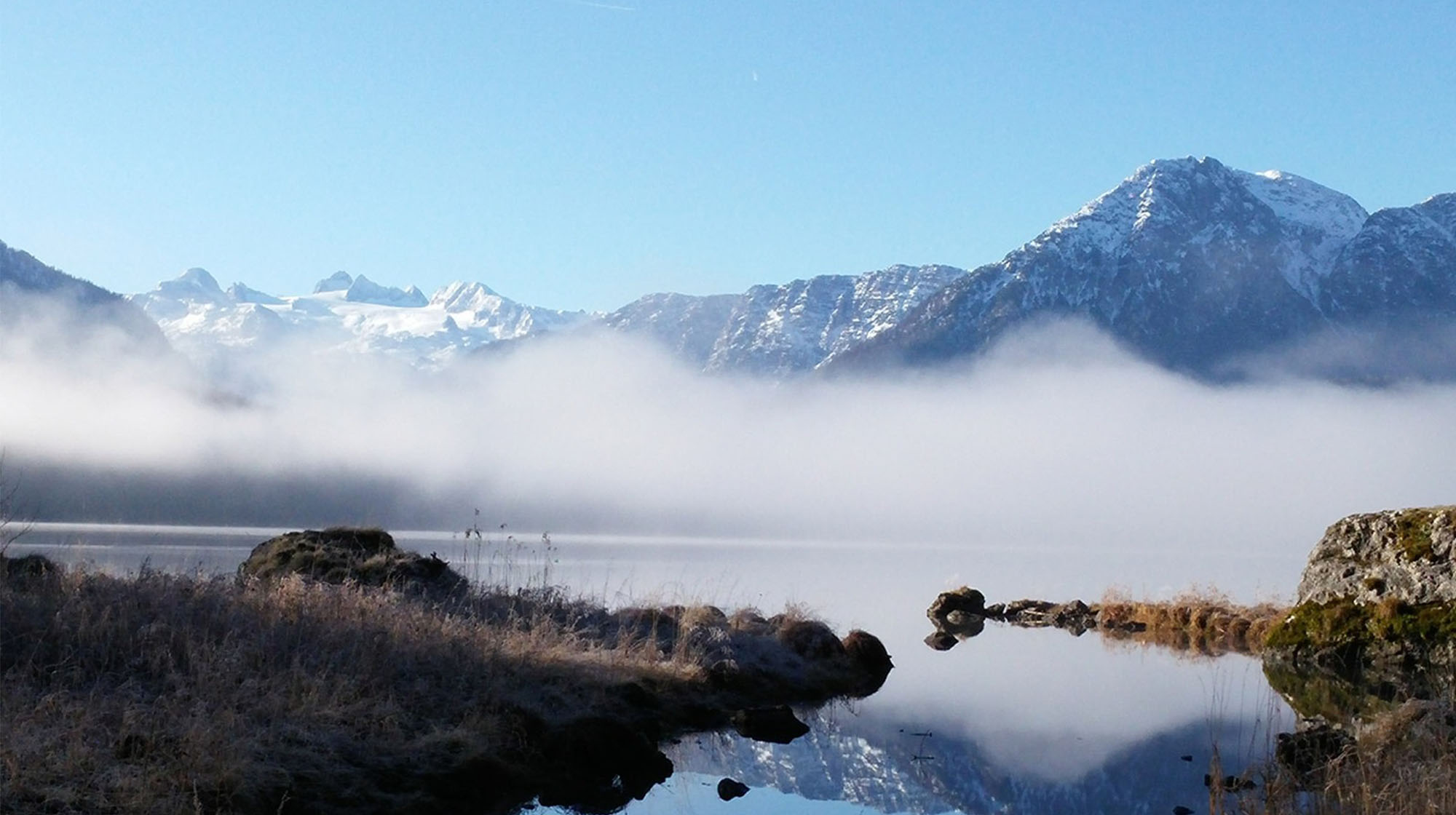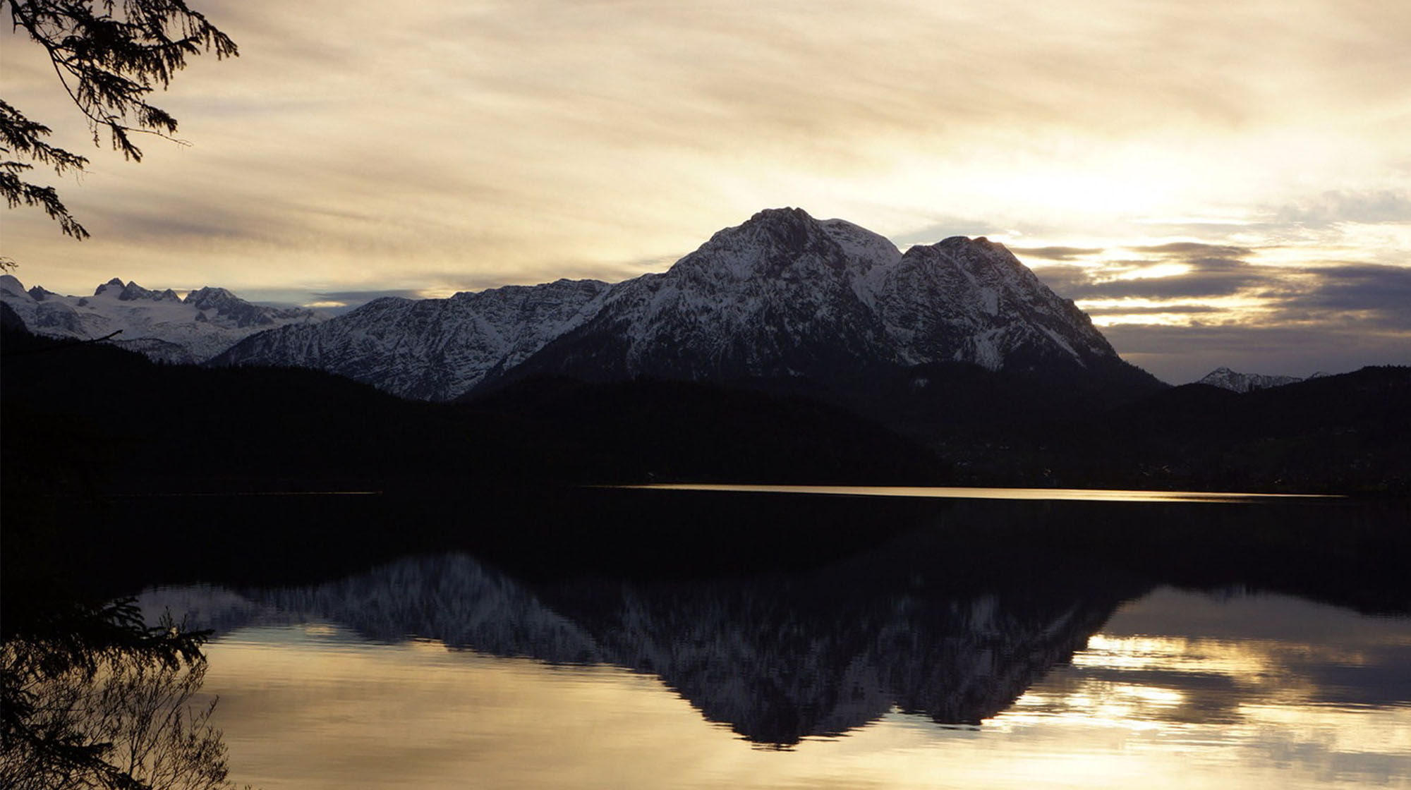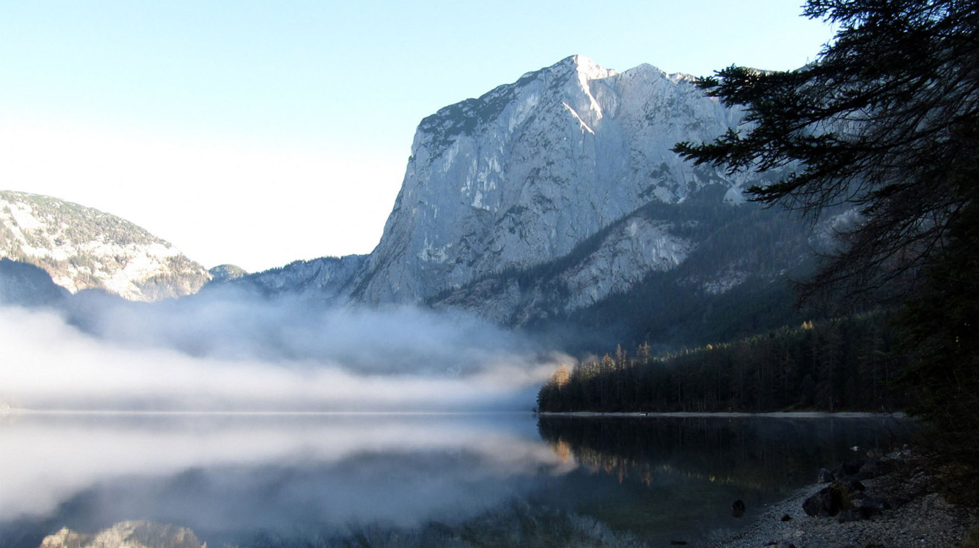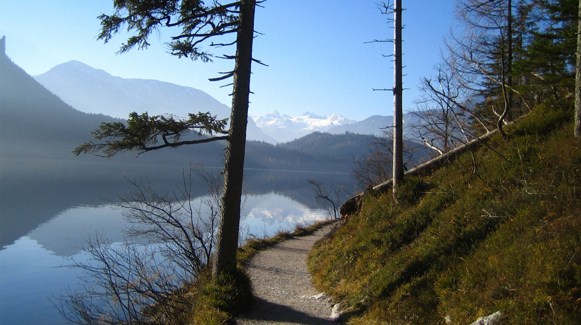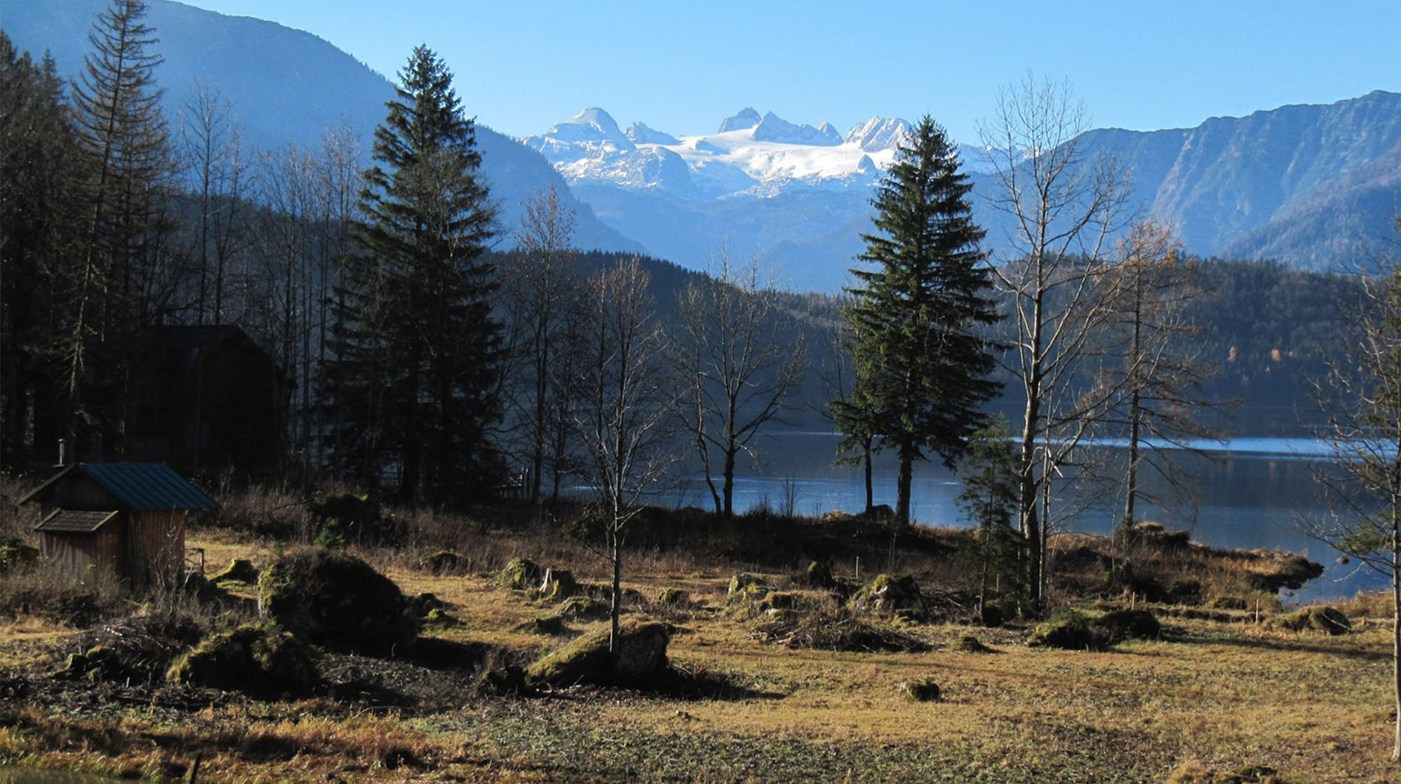 Die Morgensonne beleuchtet unsere bezaubernde Landschaft. Loser, Trisselwand, Zinken, Sarstein, Dachstein und Sandling faszinieren durch ihre Schönheit und grüßen im Licht des aufgehenden Tages. Der zum Greifen naheliegende See noch dunkel, der unverbaute ebene Uferweg lädt bereits frühmorgens zu einem Spaziergang ein.